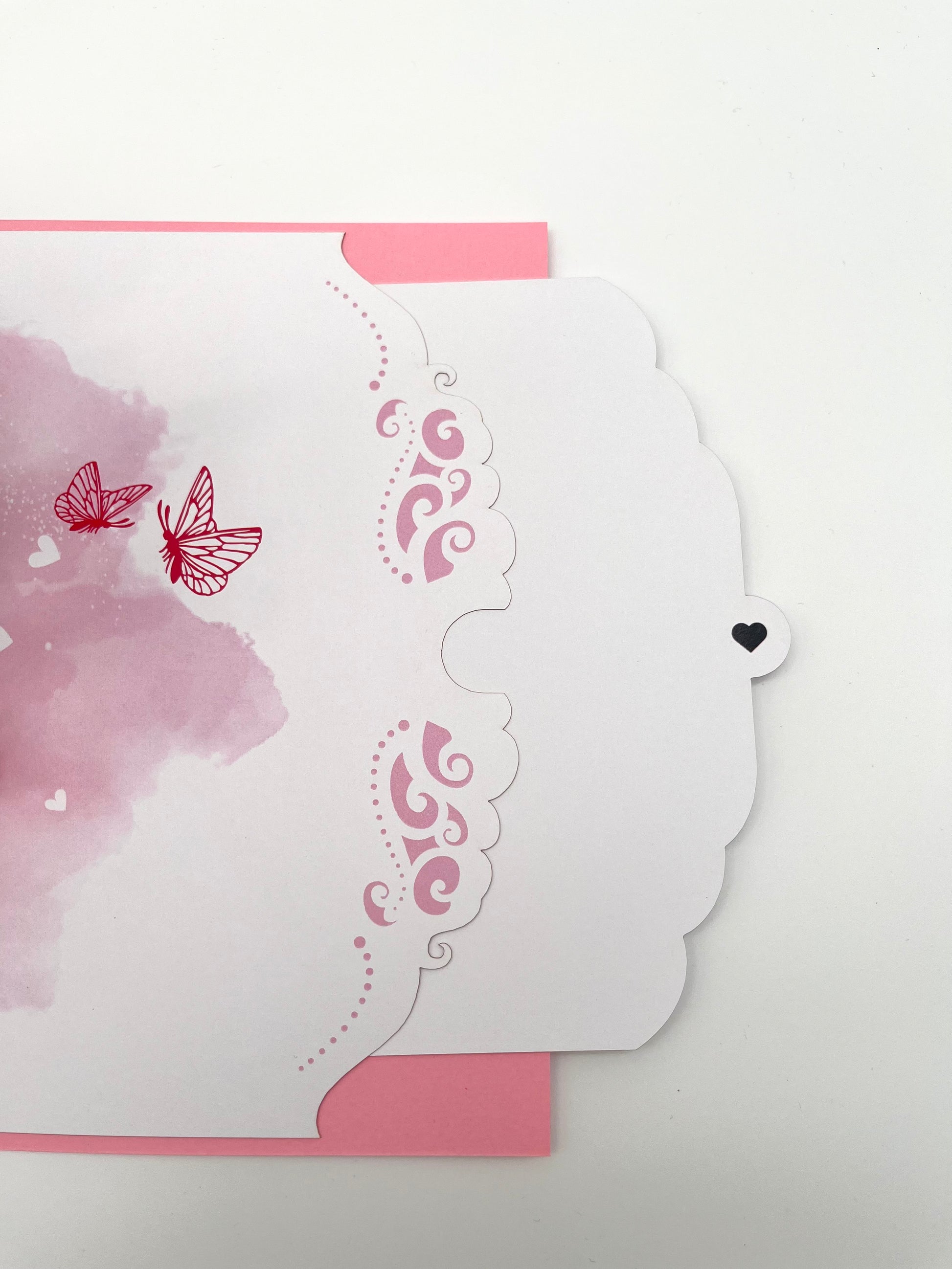 Diese romantische Klappkarte ist die perfekte Wahl, um Liebe auszudrücken – sei es zum Valentinstag, Hochzeitstag, als Einladung zu einem besonderen Date oder einfach als Zeichen deiner Zuneigung. Ideal für deinen Partner, ein verliebtes Paar in deinem Freundeskreis, oder auch als stilvolle Hochzeitskarte.